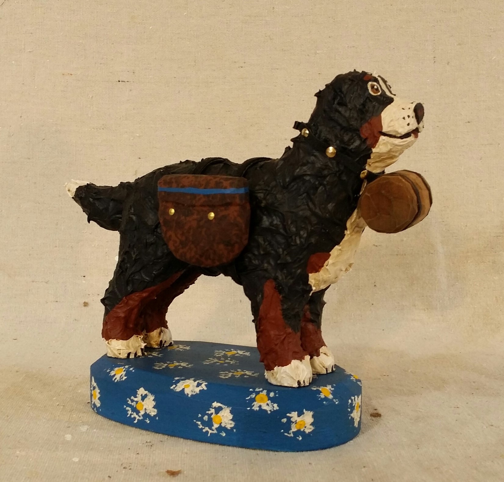 This handcarved Greater Swiss Mountain dog was made by artist and Swissy owner Jonathan Bastian. Each carving is unique and can be painted to match the markings of individual Swissies (and even Bernese).