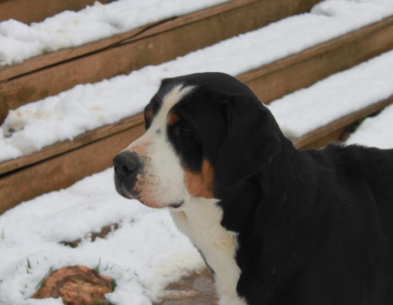 After a brief detour in the whelping box Goldie joined the ranks of the retired and enjoyed life as a country dog. Due to a personality conflict with her older cousin Eliza, it became difficult for Goldie to remain here and still be her happy, bouncy self, so Goldie joined her older half-sister Darla in retirement in Maryland with friends Tom & Diane.